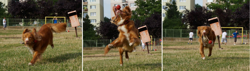 Použitie: pes sa hrá, behá a poskakuje po brehu, na ktorom ho môže dobre pozorovať kŕdeľ kačíc. Počas hry občas odbehne k skrytému poľovníkovi, ktorý mu hádže aporty. Kačice sú touto hrou také zaujaté, že sa priblížia na dostrel brokovnice. Retríver potom korisť prináša.